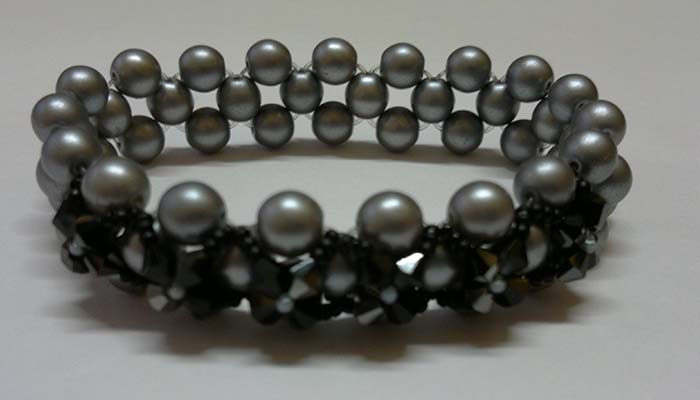 Pulsera elástica hecha con cristales de colores, plata de ley y bola central nacarada. Disponible gran variedad de colores, consultad gama.