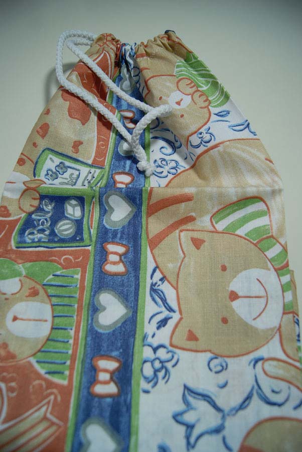 Bolsas de pan con diversos estampados y con cierre de cordón. Hay dos tamaños: pequeño (65x20 cm) a 2 € y el grande (50 x 40 cm) a 3 €. Especificad el tamaño que quereis por mail.